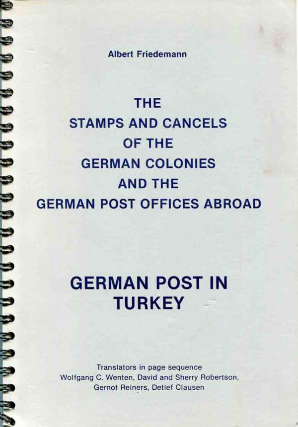 The Stamps and Cancels of the German Colonies and the German Post Offices Abroad – GERMAN POST IN TURKEY section by Albert Friedemann, published 1967, translated from German in 1978, 60 pages with b&w illustrations. Free UK post, £3 worldwide