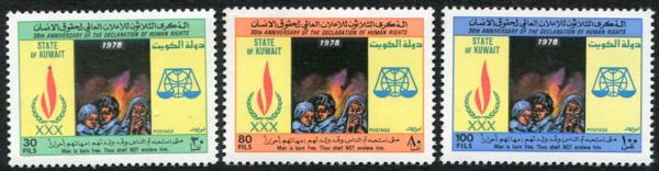 Kuwait: 1978 (10 December). Declaration of Human Rights unmounted mint set. Sg. 812/814