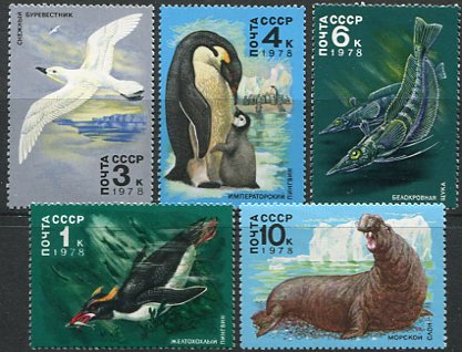 Russia – USSR: 1978 (20 July). Antarctic Fauna unmounted mint set. Sg. 4784/4788