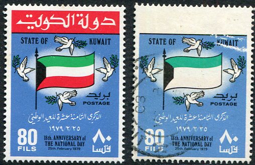 Kuwait: 1979 (25 February). National Day 80f used with red omitted error. Actual stamp for comparison only, not included.