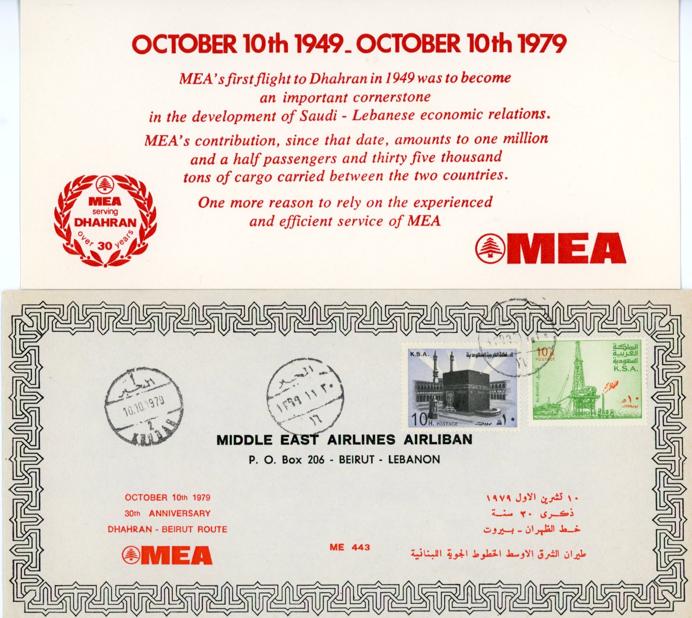 Saudi Arabia: 1979 Middle East Airlines Dhahran – Beirut flight anniversary cover.