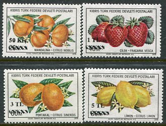 Turkish Cyprus: 1979 (4 June). Surcharged exported fruits definitive issue unmounted mint set. Isfila KT68/KT71. **