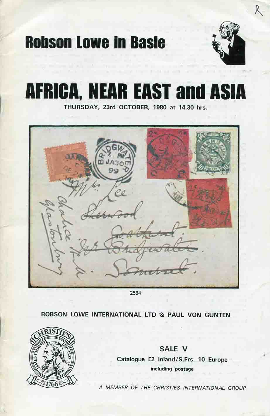 Africa, Near East and Asia 1980 Christie’s Robson Lowe auction catalogue inc. strong sections of Fezzan, Holy Land, China, Mongolia and Tibet. 299 lots with b&w and colour pictures.