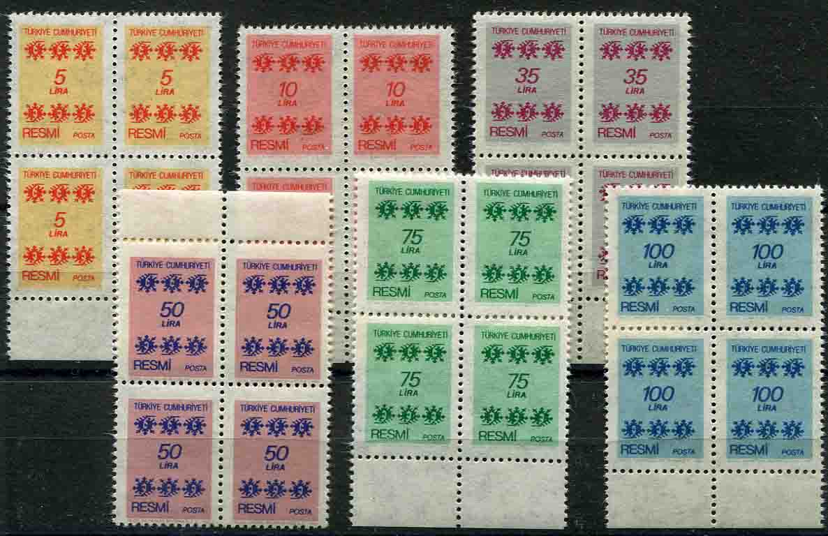 Türkiye: 1981 (23 October). Official stamps unmounted mint marginal block of 4 set. Isfila R172/177. **