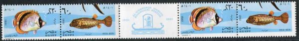 Egypt: 1982 (24 April). International Conference on Marine Science and anniversary of Marine Biological Station unmounted mint folded strip of four with label. Sg. 1473/76