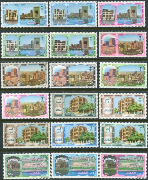 Saudi Arabia: 1984-95 Saudi Cities Riyadh, Taif, Jeddah and Dammam with and without watermark unmounted mint set of 18. Sg. 1365/1382. **