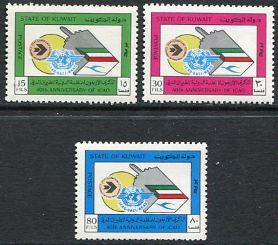 Kuwait: 1984 (12 June). ICAO Civil Aviation unmounted mint set. Mi. 1043/1045, Sg. 1044/1046