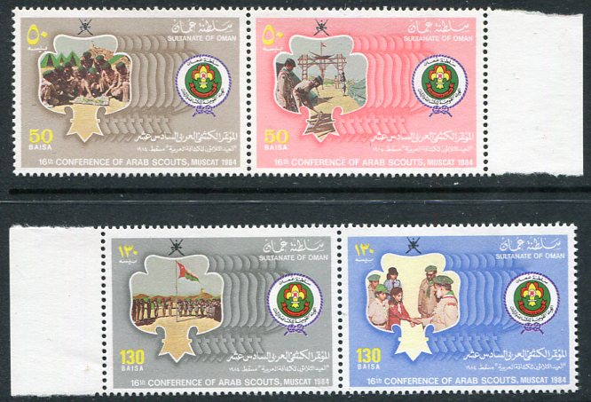 Oman: 1984 (5 December). Arab Scouts unmounted mint se-tenant set. Mi. 264/267, Sg. 294a, 296a. **