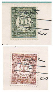 Iraq: 1982 document franked with 50f and 100f Lawyer Association Fund of 1981 revenue stamps. Ross&Powell L-4/5b, 6a