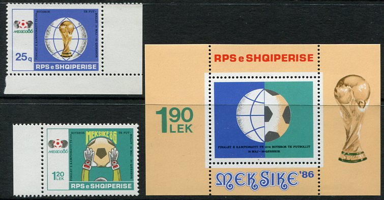 Albania: 1986 (31 May). FIFA World Football Cup, Mexico unmounted mint marginal set and miniature sheet. Sc. 2210/2212