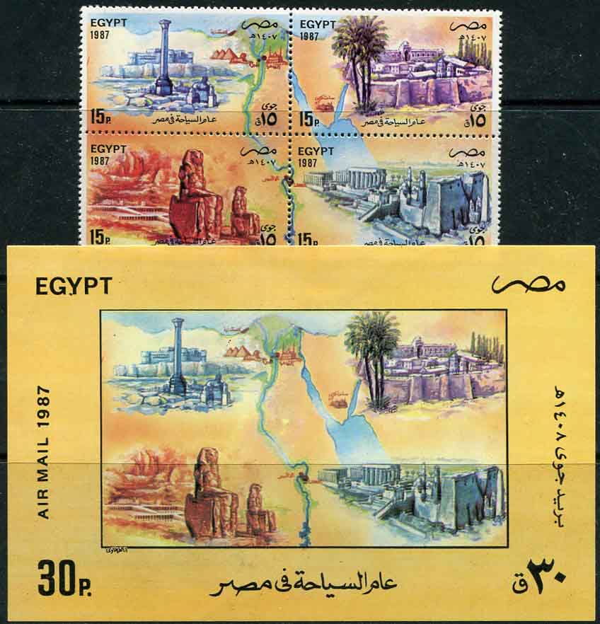 1987 Egypt Tourism NHM set and Block