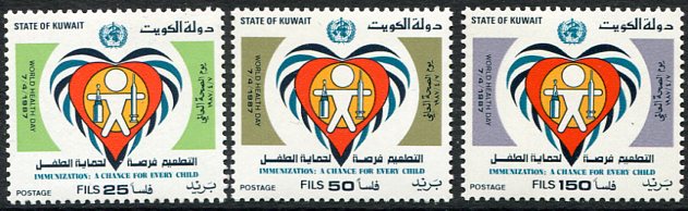 Kuwait: 1987 (7 April). World Heath Day. Child Immunization Campaign unmounted mint set. Sg. 1127/1129