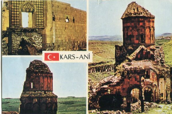 Türkiye: 1987 Kars Ani Ruins postcard to England franked with flowers and butterfly design stamps.