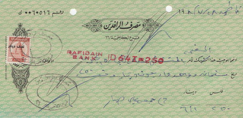 Iraq: 1984 document franked with 1/2d surcharged on 10f Gulf War Provisional revenue stamp. Ross&Powell 358