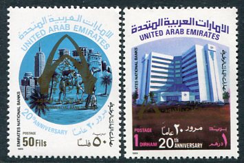 United Arab Emirates: 1989 (20 December). Bank of Dubai unmounted mint set. Mi. 277/278, Sg. 278/279
