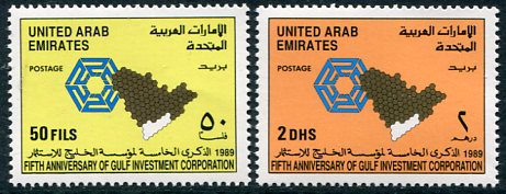 United Arab Emirates: 1989 (25 November). Gulf Investment Corporation unmounted mint set. Mi. 272/273, Sg. 274/275