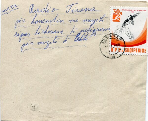 Albania: 1990 cover to Tirana franked with 30q Spartakiad Gymnastics commemorative tied by Elbasan datestamp. Sg. 2434