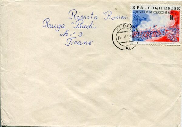 Albania: 1990 cover to Tirana franked with 90q Bicentenary of French Revolution commemorative tied by Vlore datestamp. Sg. 2422