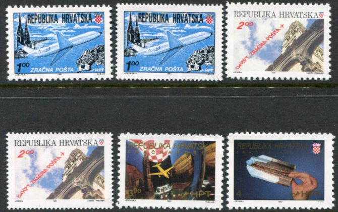 Croatia: 1991-92. Airmail stamps including perf. 14 issue and 4d of 1992, all unmounted mint. Mi. 179A,C, 180 A, Ca, 181, 189 – Sg. 154/156, 154a, 155a, 175. **