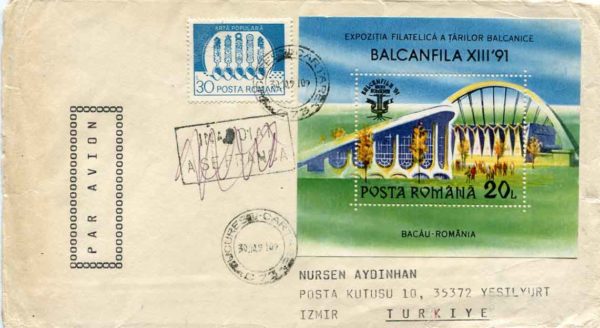 1991 Romania Balkanphila Stamp Exhibition to Turkey