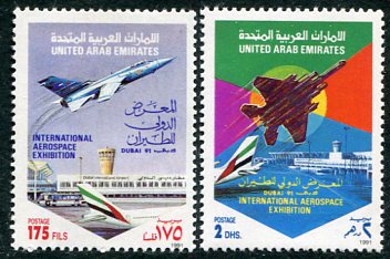 United Arab Emirates: 1991 (3 November). Aerospace Exhibition unmounted mint set. Mi. 351/352, Sg. 357/358