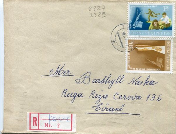 Albania: 1996 registered cover with its contents from Korce to Tirane franked with 30q and 1,20l First Albanian Schools stamps. Reverse next day arrival cds. Sc. 2239, 2241 – Sg. 2327, 2329