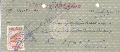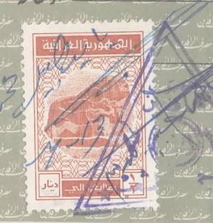 Iraq: 1992 document franked with 1/2d of 1975-87 Lion of Babylon revenue stamp. Ross & Powell 343