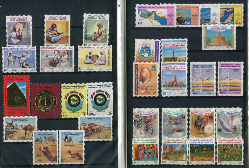 United Arab Emirates: 1992 yearbook of complete issued set excluding souvenir sheet and withdrawn EXPO 92 250f. Mi. 362/396 (less 369, Block 11). **