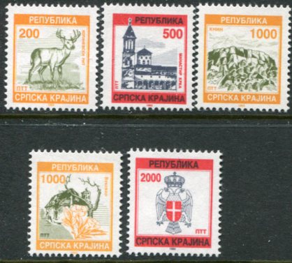 Croatia – Serbian Post (Krajina): 1993 (24 March). First issue unmounted mint set. Mi. 1/5, Sg. K1/K5. **