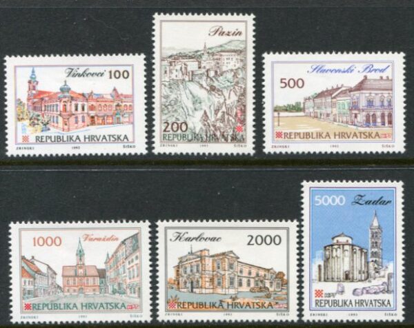 Croatia: 1993 issue Croatian Towns unmounted mint to 5000d. Sg. 208/213 **