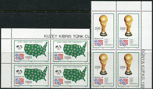 Turkish Cyprus: 1994 (30 June). FIFA World Football Cup, USA unmounted mint block of four set. Isfila KT382/KT383 **