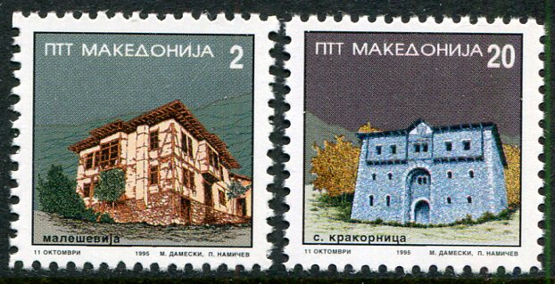 Macedonia: 1995 (4 October). Buildings. Maleshevija – Krakornica unmounted mint set. **