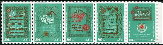 Iran: 1997 (9 December). Islamic Summit – Calligraphy unmounted mint set in strip of five. Sg. 2939a