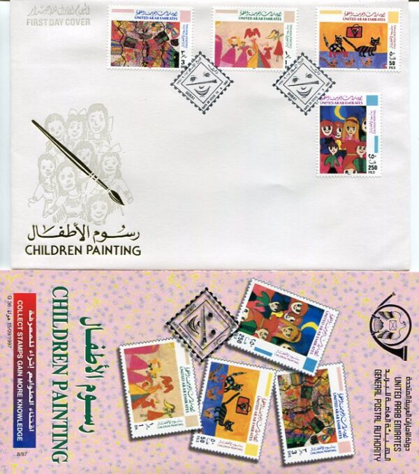 United Arab Emirates: 1997 (15 September). Children Drawings DUBAI cancelled first day cover and information booklet. Mi. 553/556