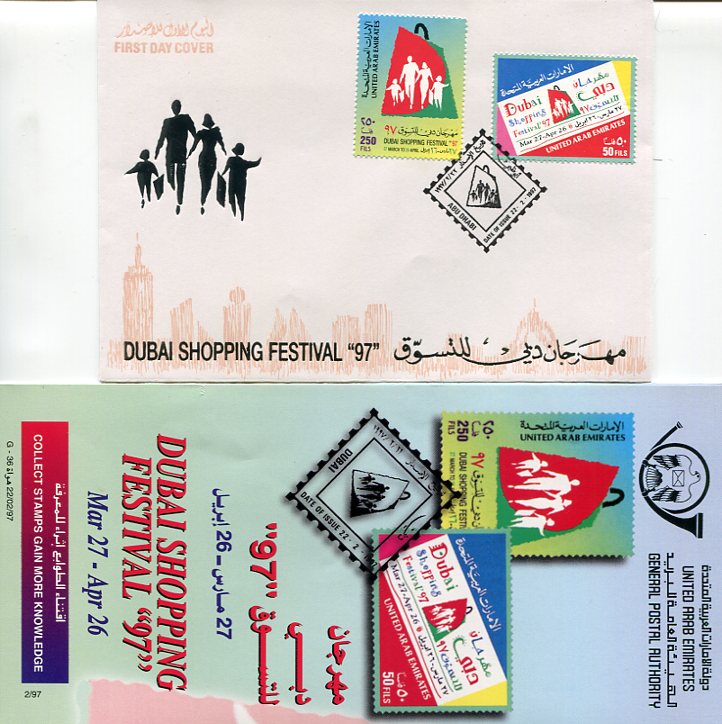 United Arab Emirates: 1997 (22 February). Dubai Shopping Festival DUBAI cancelled first day cover and information booklet. Mi. 539/540