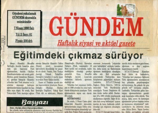 1998 Greece Komotini Gümülcine Turkish Newspaper