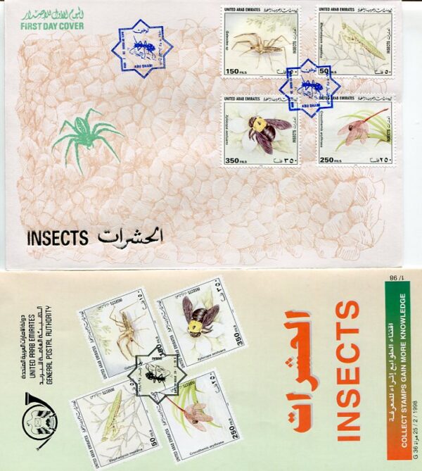 United Arab Emirates: 1998 (25 February). Insects ABU DHABI cancelled first day cover and information booklet. Mi. 571/574