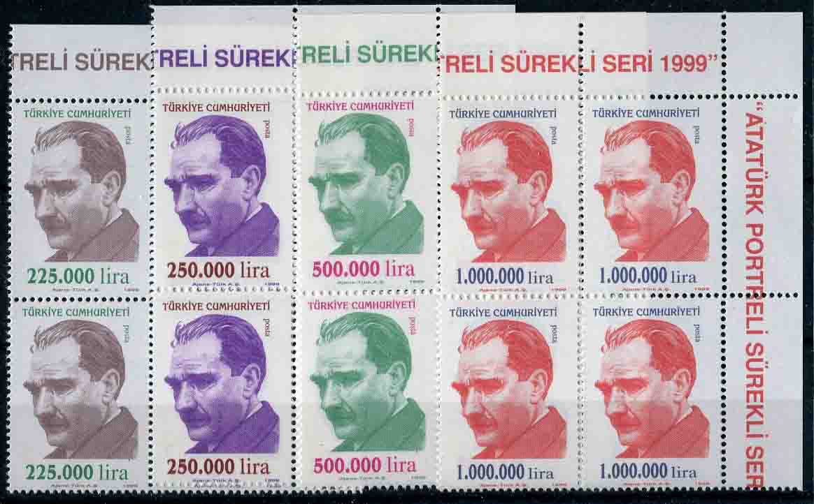 Turkey: 1999 (27 September). Ataturk definitives unmounted mint marginal block of 4 set. Isfila 3594/3597