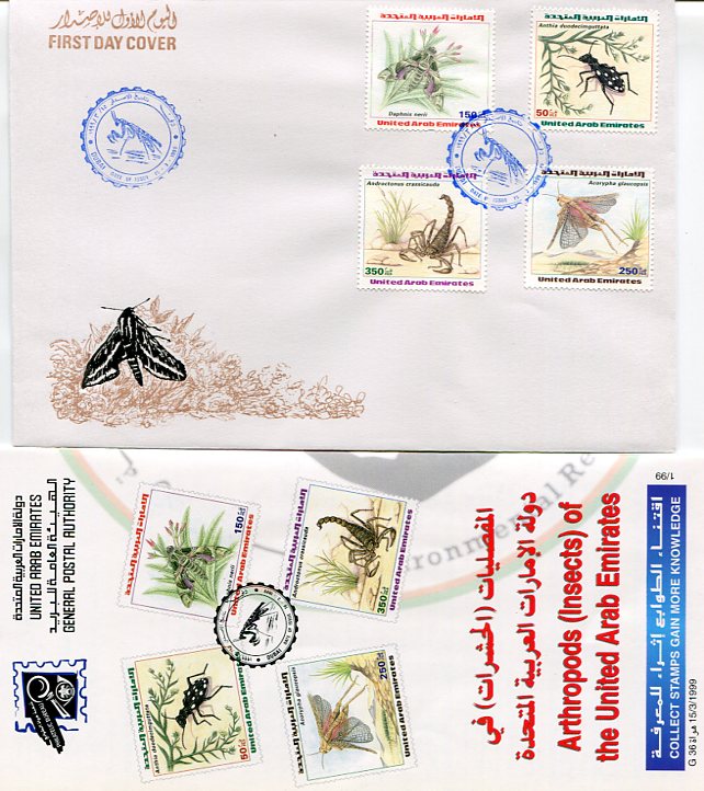 United Arab Emirates: 1999 (15 March). Insects DUBAI cancelled first day cover and information booklet. Mi. 609/612