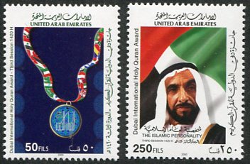 United Arab Emirates: 2000 (23 September). Holy Koran Award unmounted mint set. Mi. 641/642, Sg. 655/656