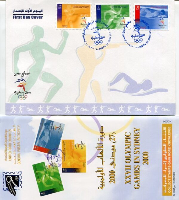 United Arab Emirates: 2000 (16 September). Sydney Summer Olympics ABU DHABI cancelled first day cover and information booklet. Mi. 638/640