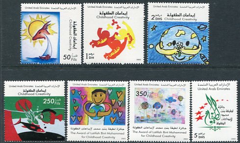 United Arab Emirates: 2002 (9 October). Children Drawings unmounted mint set. Mi. 683/689, Sg. 697/703