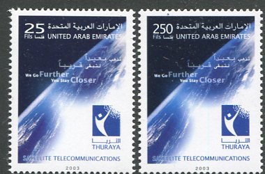 United Arab Emirates: 2003 (6 – 27 January). Thuraya Communications Satellite unmounted mint set. Mi. 699/700, Sg. 714/715