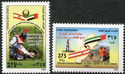 United Arab Emirates: 2004 (25 October). Mine Clearance in South Lebanon unmounted mint set. Mi. 768/769, Sg. 779/780