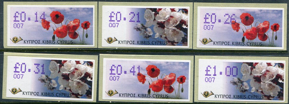 Cyprus: 2005 (3 March). Spring Flowers self-adhesive set of six with code 007 for Larnaca.