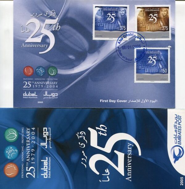 United Arab Emirates: 2005 (8 January). Dubai Aluminium Company ABU DHABI cancelled first day cover and information booklet. Mi. 780/782
