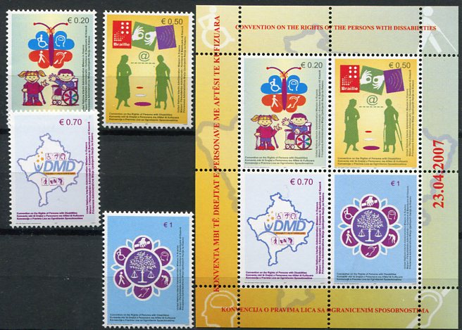 Kosovo: 2007 (23 April). Disabled People Rights Convention unmounted mint set and miniature sheet.