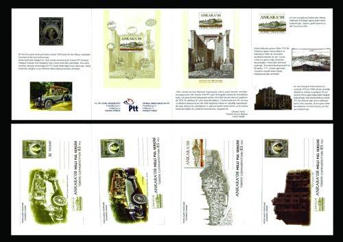 Turkey: 2008 (24 October). Ankara 08 National Stamp Exhibition portfolio includes four postal stationery cards which one of them numbered to 5,000.