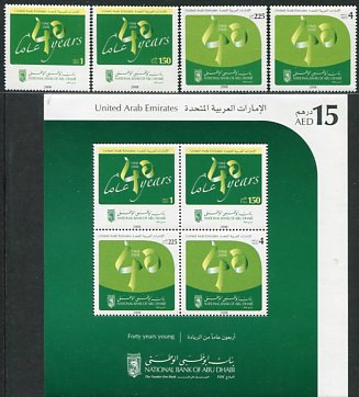 United Arab Emirates: 2008 (13 February). Abu Dhabi National Bank unmounted mint set and miniature sheet. Mi. 915/918 + Block 37, Sg. 947/950