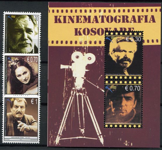 Kosovo: 2010 (26 January). Kosovo Cinema and movie stars unmounted mint set and miniature sheet.